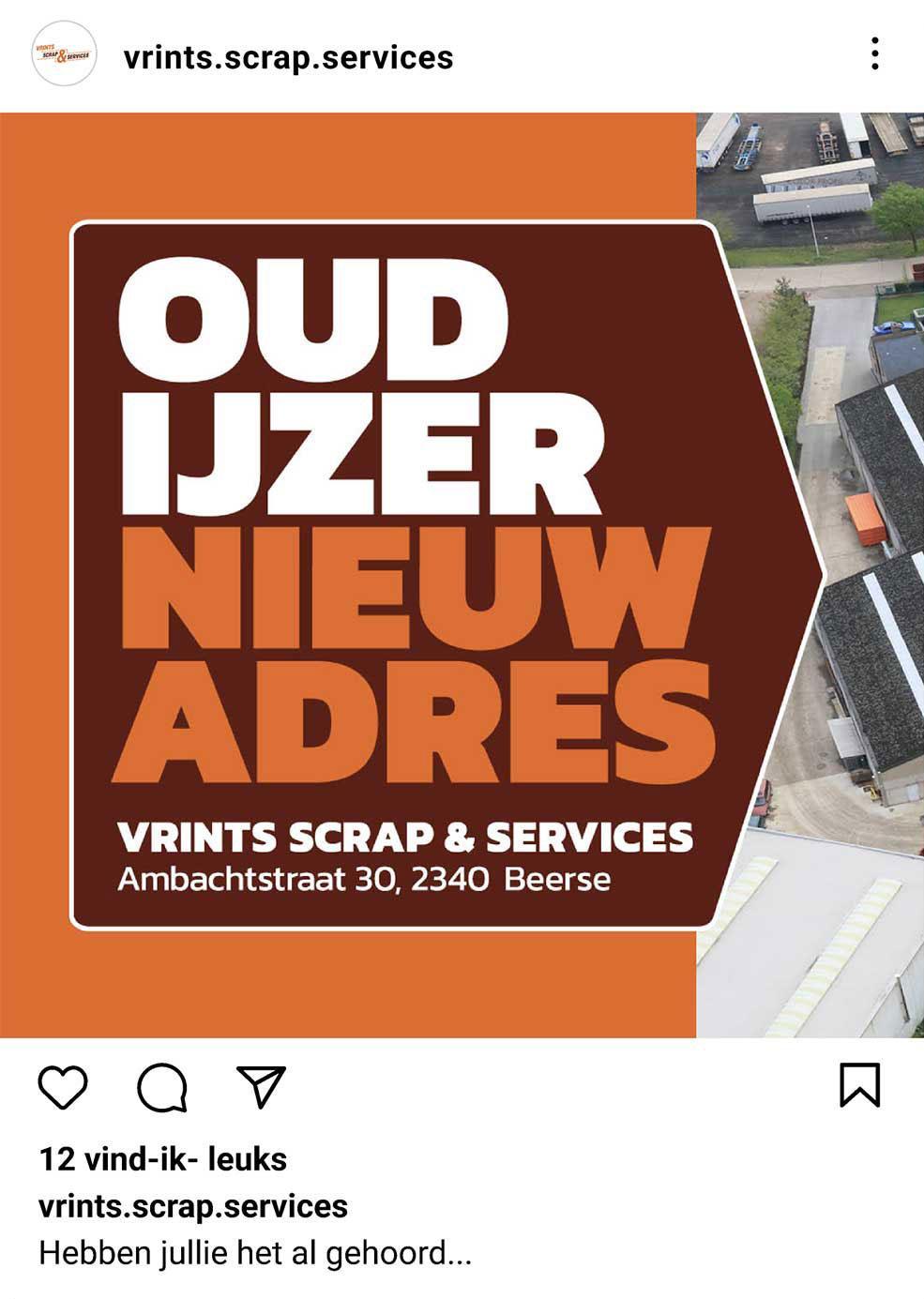 Vrints Scrap & Services, een schroothandel en expert in metaalrecyclering, vroeg ons de bestaande website onder handen te nemen. Het bedrijf vestigde zich op een nieuwe locatie en wou ook een opendeurdag organiseren. Voor dat event ontwikkelden we een social mediacampagne die resulteerde in meer dan duizend bezoekers.